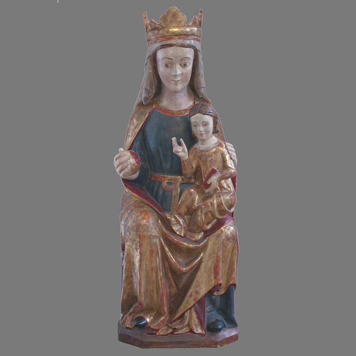 Da eine Rückgabe an die Gemeinde keine Zustimmung fand, wurde eine Replik angefertigt. Die bildhauerische Kopie wurde durch Joachim Droll, Köln angefertigt und erhielt dann in unserer Werkstatt die farbige Fassung und Vergoldung.